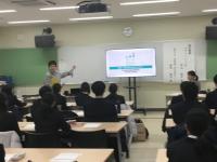本校の谷口先生からは4月から、または2年後に社会に出る生徒たちへ社会人としての心構え、二羽先生からは世界の色んな人とのつながりについて語って頂きました。
