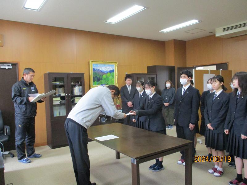 10月7日(金)、校長室にて陸上競技部北信越新人大会と少林寺拳法部世界大会激励費授与式が行われました。