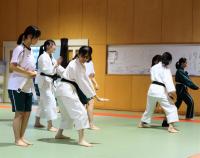 馳知事から若林さんには、「日本語で発表したの?」「どんなテーマなの?」「少林寺拳法はいつから始めたの?」「何で優秀賞が取れたと思う?」「将来の夢は?」「知事の私に質問はない?」など、矢継ぎ早に質問があり、一つ一つ丁寧に答えると、「話し方が良いね。一言一言に言葉の力を感じる。やっぱり優勝するわね。」「スポーツや武道に引退はない。生涯現役でこれからも頑張ってね。」とお褒めと激励のお言葉をいただきました。知事室を出て、緊張がようやく解けた若林さんと村上先生は、「予想以上に多くの時間、知事とお話でき、緊張したけど事前に校長先生よりたくさん質問が飛んでくるぞと聞いていて、心の準備ができていたのでしっかり話せました」と語り、訪問を楽しんだようでした。