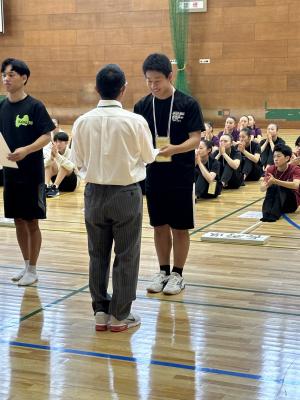 9月15日(金)、校長室にて水泳部の国体激励費授与式が行われました。