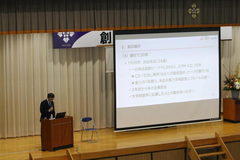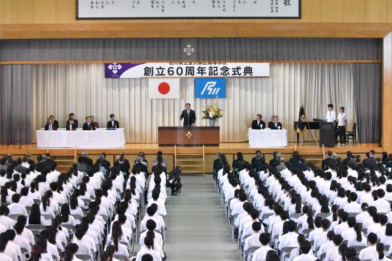 9月23日(土・祝)、来賓に馳知事をはじめ多くの方々をお迎えし、創立60周年記念式典が行われました。生徒主体の運営とし、各係は生徒が中心となって準備から行いました。歴代校長や永年勤続者表彰が行われ、懐かしい先生方も来校されました。式典の後は、記念講演がありました。三菱みらい育成財団常務理事の妹背正雄氏を招聘、「心のエンジンが駆動するとき」と題し、これからの世を生きる若人に必要な力についてお話しいただきました。開校から60年の節目を迎えた金沢錦丘高校。県立では唯一の中高一貫教育を実施している学校として、その特性を活かしつつ生徒、教職員共に今後も精進してまいります。