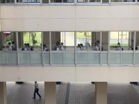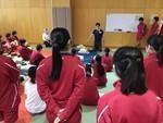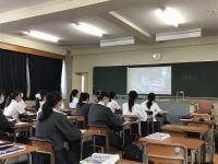 全員、指定された教室に入り、副校長、代表生徒から学校の概要説明、その後、学校紹介ビデオの視聴、