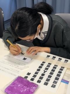 2日の開会式のあと、交流会が行われました。全国の高校生が10人ほどのグループに分かれ、ミニ巻子に江戸文字を寄せ書きするという体験をしました。短い時間でしたが書道を通じて、初めて出会った仲間と作品を作り上げる喜びを共有できたことが、良い思い出となりました。