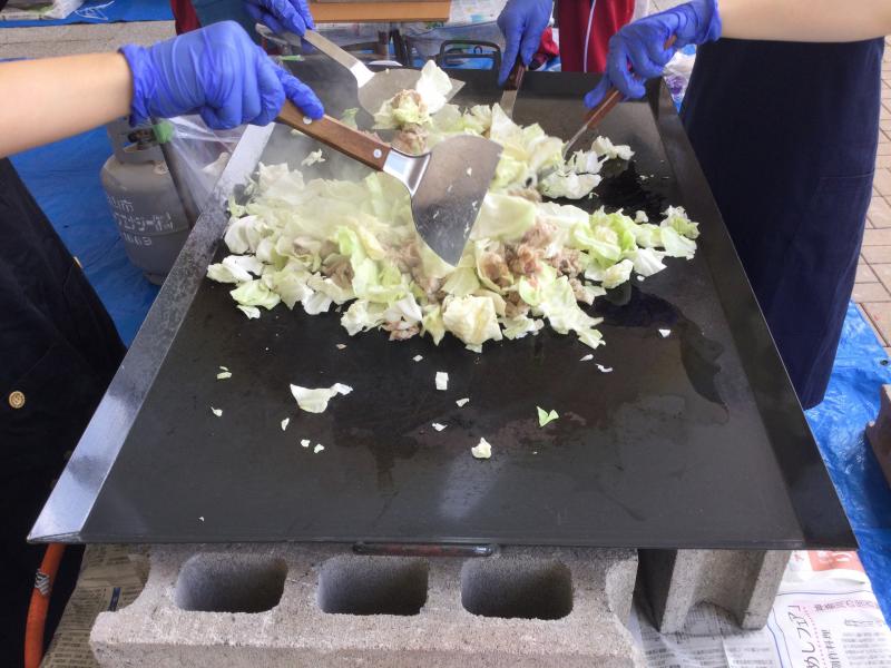 33Hは朝から暑い中焼きそばを焼いています。