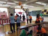 唐揚げを販売する教室の装飾はまだのようです。明日までに間に合うか!