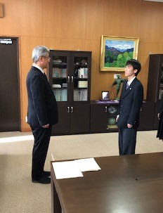 井波秀俊PTA会長様から、激励費を渡されたのは15H髙宮あかりさんです。「精一杯がんばって来て下さい」という井波会長、堀学校長の激励の言葉の後、髙宮さんは「錦丘高校の代表として、頑張ってきます。応援よろしくお願いします。」という旨の立派な挨拶をしてくれました。