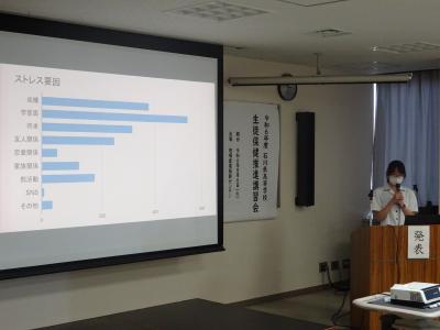 8月6日(火)に県地場産業振興センターで行われた「生徒保健推進講習会」において、本校から2つのグループが発表を行いました。