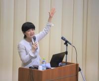 教育ウィーク中の11月2日(土)、第一フロアにて教育講演会が行われました。講師に株式会社ゆめかな代表取締役の石川尚子さんをお招きし、「夢を叶えるコミュニケーション ー最強の言葉と発想法ー」と題してご講演いただきました。小学生から経営者まで幅広い年代に講演活動を行う石川さんは、冒頭に「子供の頃に憧れていたことを今、全部やれている気がします」と語り出しました。