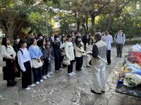 ひめゆりの塔にて献花後、ガイドさんのお話しがありました。