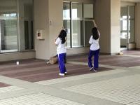 8月終わりに行われる、文化祭(紫錦祭)に向けて、クラスの準備や部活動の練習が始まっています。コロナ感染対策のため、今年度も参加できるのは本校生徒のみです。たくさんの制約がある中、生徒たちは、密にならないように準備や練習を工夫して行っています。劇の練習をする演劇部、装飾用の段ボールに色を塗るクラス、ダンスの練習をしている生徒、室内では、文化祭で使用する御園棚を使ってお手前のお稽古をする茶道部の姿も。どの生徒もみんな、いきいきと活動していました。