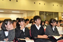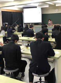 入学試験・就職試験が近くなった今、どの会場にいた生徒も、真剣ないい表情で講師の説明を聞いていました。3年生にとって、耳の痛い内容も多く、その分、自分たちのこととして納得できる話であったはずです。今回の話を参考にして、また今日から自己実現に向けて粘り強く努力を続けてほしいと期待しています。