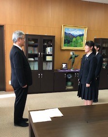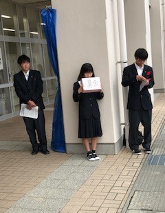 受賞した生徒3名のうち、2名(17H岸川怜奈、24H田中雅)が