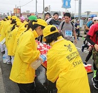 例年のとおり、本校生徒の有志たちが、10月27日(日)に行われる金沢マラソンでボランティア活動を行います。現在、男女テニス部・合唱部・放送部・JRC部・家庭部・茶道部・パソコン同好会・総務委員・吹奏楽部の1,2年生及び教員約150名が参加予定です。すでにボランティアの活動内容が各部に割り振られており、円光寺の交差点付近の沿道や給水所にてその活動を行う予定です。