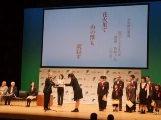 今年は松尾芭蕉が『奥の細道』の旅を初めて330年の記念の年であり、表彰式に、全国各地に点在する『奥の細道』ゆかりの県の関係者が多数参加して、例年よりも盛大な表彰式となっていました。