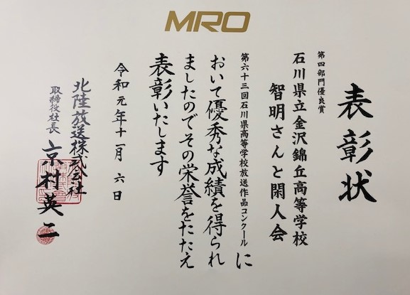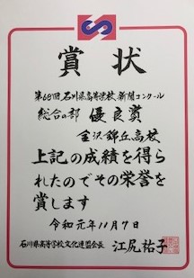 錦高日記10月25日(金)Ⅰ ~文芸部 石川県文芸作品コンクールの結果!~