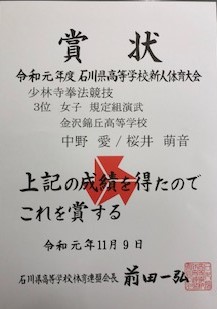 錦高日記12月9日(月)Ⅰ ~かるた部 北信越大会in福井~