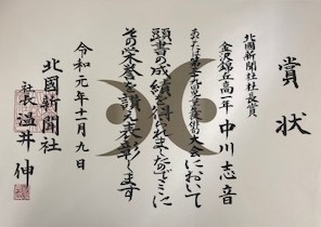 先日、第65回読書感想文コンクールの入賞者が発表され、本校から25H喜多志帆さん、26H田邊美桜さん、11H金濱想さん、同H水野はるひさん、12H清造菫さんの5名が優良の賞をいただいています。頑張ったね。おめでとう!!