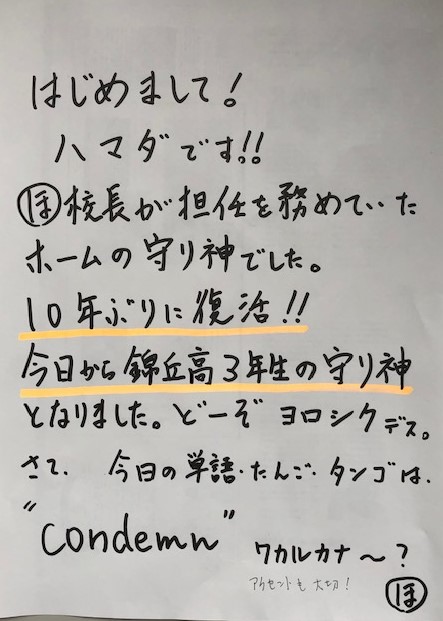 錦高日記12月5日(木) ~3年生 守護神登場!!~
