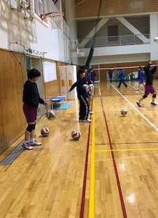 さて、下の写真は女子バレー部とバドミントン部の練習風景なのですが、これをご覧になっている皆様方は、今までの風景と何か違いを感じませんか?