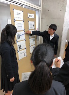 発表役が回ってきたときの生徒たちは、大学生、他校の先生や保護者の方々が混じった聴衆者に対して、やや緊張した面持ちで(終始笑顔で説明する強者もいましたが・・)精一杯の説明や質疑応答を行っていました。説明を時間内にうまくできなかった生徒が、終わったとたんに何とも悔しそうな顔をする姿がしばしば見られ、彼ら彼女らの成長を見てとることができました。また、見学に来られた他校の先生から「1回目のフィールドワークでの課題を受けて、うまく2回目につなげているグループの発表が多かった。」という感想をいただき、探究スキルも向上しているという手応えも感じることができました。