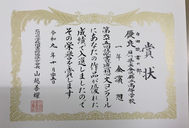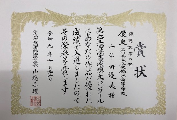 先日、石川県高文連文芸部主催「文芸作品コンクール」の審査結果が届きました!詩・俳句・短歌・散文(小説)・文芸部誌の部門があり、本校の文芸部員が多数入賞しました!!