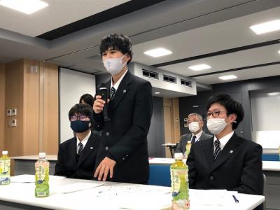 最後に感想を聞かれると、「今回、専門家の方々のご意見を聞くことができ、視野が広がりました。」などと述べていました。引率された北村先生によると、帰路では、これから2年生の探究活動でどのように深めていけるかを話していたそうです。かれらの「やってみたい」「もっと知りたい」という気持ちに拍車がかかったようです。
