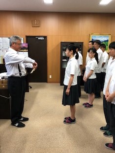 今週末に行われる北信越大会には、本校から陸上競技部(11名)、新体操部(1名)、少林寺拳法部(16名)の3つの部が参加します。本日昼の時間帯に、校長室でこの大会に出場する選手に激励費を手渡しするセレモニーがありました。各部の代表者が、順に堀校長から激励費を受け取り、熱く決意表明を述べていきました。緊張感いっぱいの顔も見えましたが、当日は是非自然体を心がけて、最後までベストをつくしてくださいね。応援していますよ!