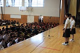 各部代表のあいさつ、生徒会長と教頭の激励の言葉とつづき、有志による応援がありました。今年は女子生徒有志による「あとひとつ」の合唱もあり、学校全体で出場生徒を応援する感じがした壮行式でした。