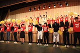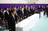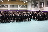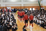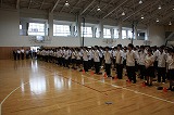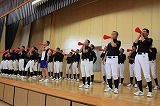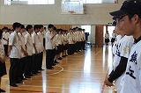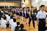 最後に、これからのより一層の中高連携を祈って、生徒会、高校各部長らを先頭に、頑張ろう三唱を行いました。