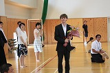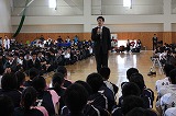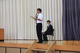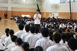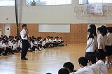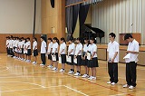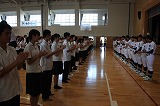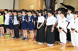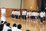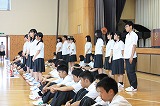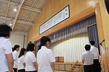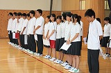 続いて1学期の終業式が行われ、宮本雅春校長先生から、3年生には勉学に励むように、1・2年生には勉学とともに部活動も休まず続けるようと訓示がありました。