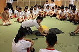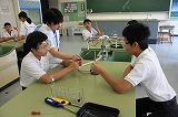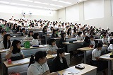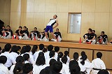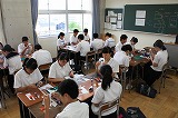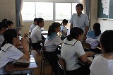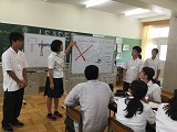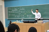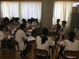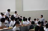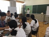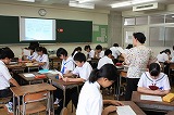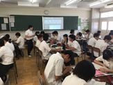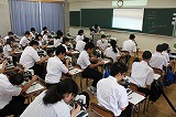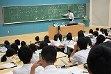 つづいて、冷房の効いた教室で本校教員による30分間の模擬授業が行われました。