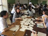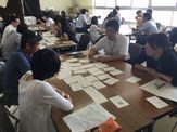 第2部は各自の授業をアクティブラーニングの視点から見つめました。各自作成したレーダーチャートを持ち寄り、パターンが示されたカードを利用して、授業を振り返りました。ワークショップで行いましたが、それぞれのグループで自分の経験について、とても活発なやりとりが行われ、授業改善に取り組む本校職員の意欲を垣間見ることが出来ました。