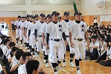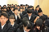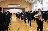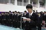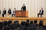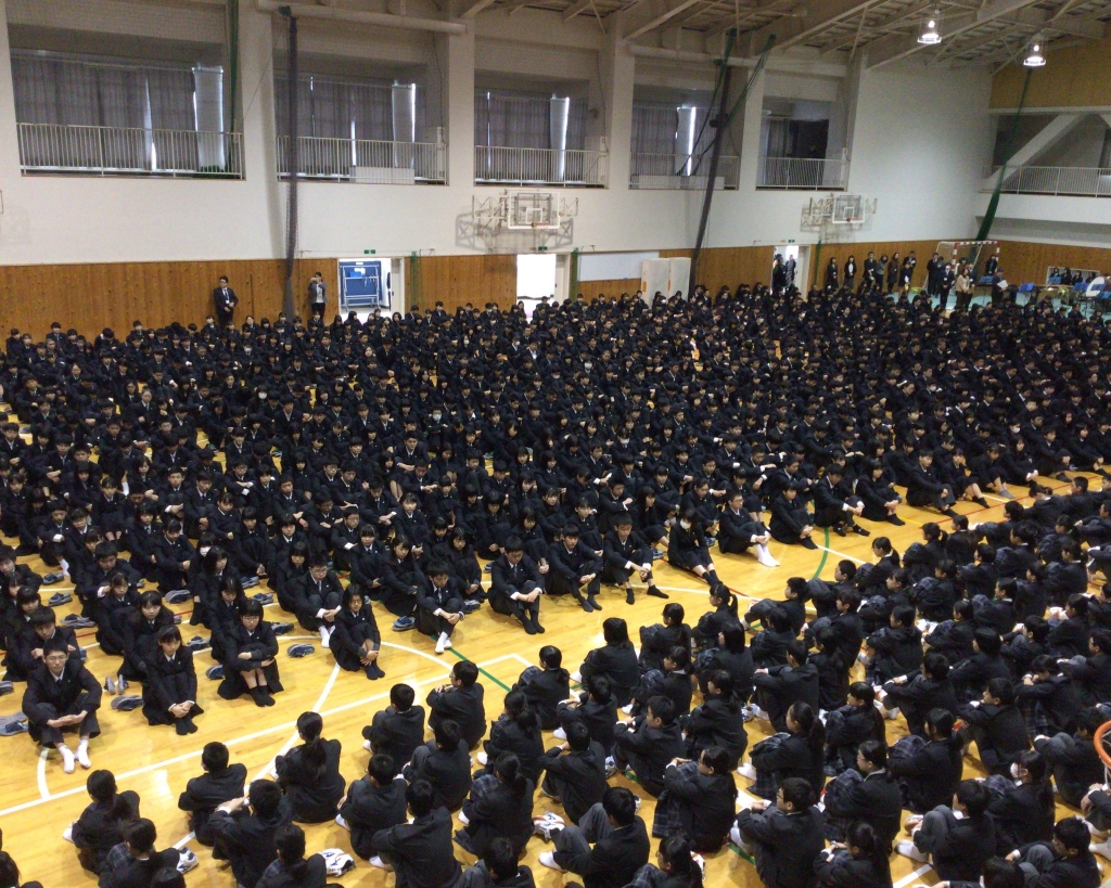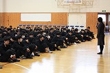 宮本校長から、「昨日引退を表明したイチロー選手が長い間活躍できたのは、『50歳までプレーをする』という明確な目標を持っていたからで、目標を持つことは大切である」と訓示がありました。続いて、生徒指導主任、進路指導主任より春休みの過ごし方について話がありました。