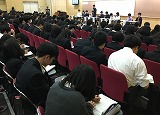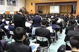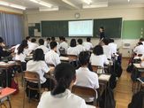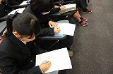 ネットトラブルの事例をいくつか動画で紹介していただきましたが、最初は面白半分で見ていた生徒たちも、徐々に真剣な表情に変わり、細川氏のアドバイスをしっかりメモしていました。身近に潜むネットトラブルの危険性を改めて感じられた様子でした。