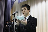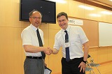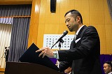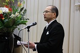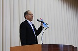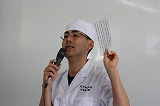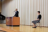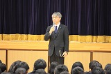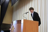 アラステア先生は金沢錦丘高等学校での勤務と金沢での生活が楽しかったことを英語と日本語で話されました。