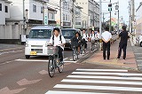 交通ルールを遵守しているか(自転車レーン及び左側通行、並進しない、携帯・イヤホーンの使用をしないなど)、歩行者や他の車両(自動車・自転車)に対して安全に配慮しているか、などに重点を置き注意を行いました。