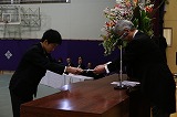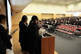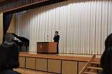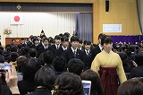 学校長から「卒業後は、自分一人で判断しなければならない時がある。そのためには判断するための軸をもっていなければならない。軸をもつためには豊富な経験が必要で、自分の目・耳・足で確かめ、いろいろな経験をしてほしい。そして良い判断をするためには、健康であることが大切」と式辞がありました。