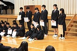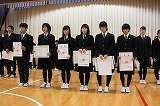 本日4限目、最近の試合やコンクールなどの表彰伝達式、2学期の終業式が行われました。終業式では宮本校長から「この冬は力を蓄える時期。やらなければならないことに気づいた時に、すぐにやることが大切」と訓示がありました。