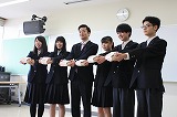 1・2年生の「総合的な学習の時間」で今年度から課題研究を行い、2年生の6人(本日1名欠席)グループが今回の「受験生応援弁当」を考案し、米心に提案しました。