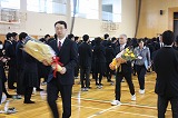 卒業式の前日である今日、3月3日(月)の午後、皆勤賞授与、生徒会功労者表彰の表彰式が行われました。続いて、卒業記念品贈呈式が行われました。