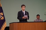 谷本正憲知事、矢田富郎同窓会長、下沢佳充県議会議長からそれぞれご挨拶を頂き、また、生徒を代表して生徒会長のモーニン・ジェイムズ君が挨拶の言葉を述べました。