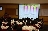 講師は進路主任で、これまでの本校の合格実績、全国の国公立大学、最近の入試問題の傾向を踏まえ何をしなければならないか、文系理系の選択についてなど、1年のこの時期に知っていてほしいことばかりでした。