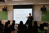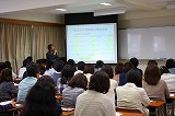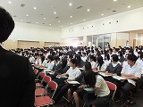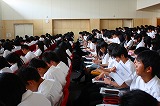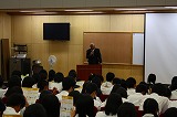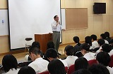 講師は進路主任で、これまでの本校の合格実績、全国の国公立大学、最近の入試問題の傾向を踏まえ何をしなければならないか、文系理系の選択についてなど、1年のこの時期に知っていてほしいことばかりでした。
