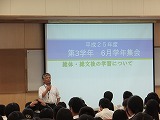 3年は「平成25年度の進路指導と主な流れについて」大学入試の現状と保護者に気にとめておいて欲しいことについての話がありました。