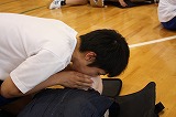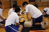 1年生対象に救急処置講習会が行われました。各クラス2時間ずつ、人工呼吸・心臓マッサージ・AEDの使い方を学びました。講師は日本赤十字社石川県支部指導員で、テレビドラマの「うそ」を紹介する場面もあり、楽しい講習会になりました。昨年度、県内の学校では救急処置によって命を取り留めた事例が2件あったそうです。もし、救命が必要な場面に出くわしたら、今日の経験を生かしてほしいと思います。