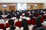 「ケータイ安全教室」は株式会社NTTドコモ北陸支社の方により、架空請求詐欺、なりすまし、個人情報の取り扱い、誹謗中傷・犯行予告などの内容でした。それぞれの内容についてフィクションのドラマがあり、生徒たちにとっては強く印象に残る映像でした。