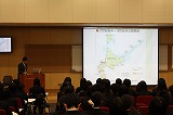 講師は石川県立大聖寺高等学校の新本欣悟教諭で、「石川県人の北海道移住と夕張」と題して話がありました。明治には石川県人が毎年千戸以上北海道に移住し、「日本一の移民県」だったことなど、非常に興味深い内容で、生徒もメモを取りながら真剣に聞いていました。