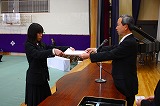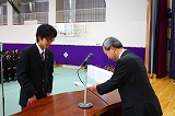 今日28日(木)の午後、卒業式予行に先立ち、皆勤賞授与式などが行われました。
