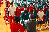 球技大会の後、その表彰式、表彰伝達式と、平成25年度前期生徒会役員立会演説会を行いました。
