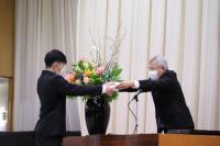 本日3月1日(火)午後、第1フロアにて紫錦賞・生徒会功労賞・皆勤賞授与式と卒業記念品贈呈式、同窓会入会式等が行われました。まだまだ肌寒い気候の中、3年生の明るい笑顔が印象的でした。